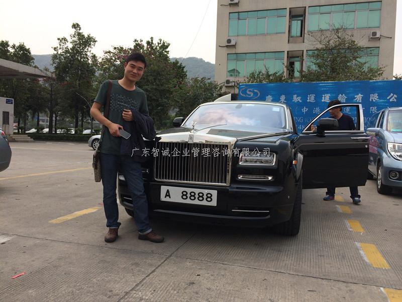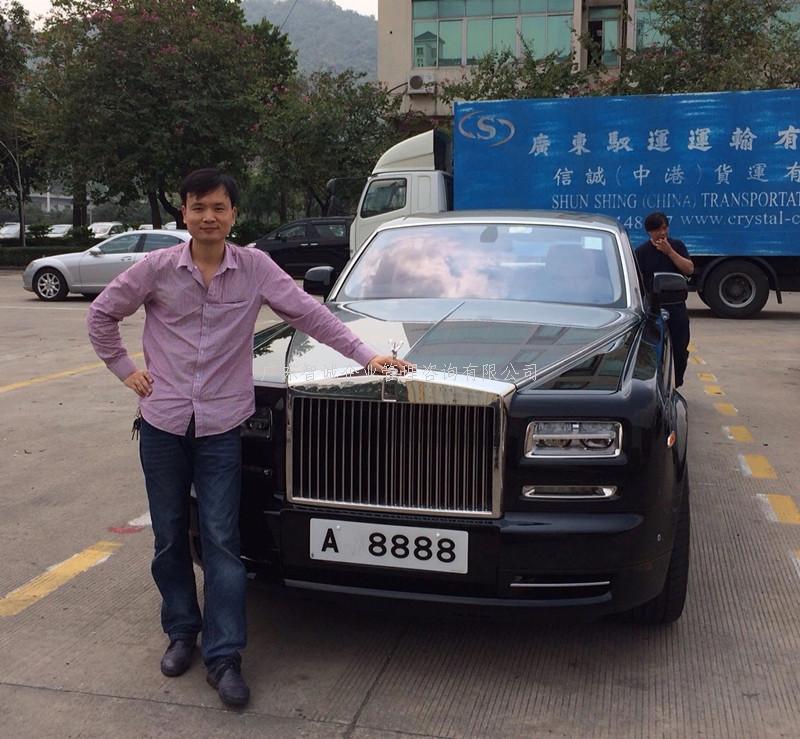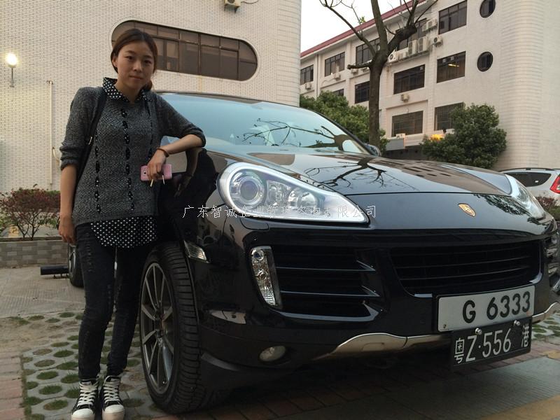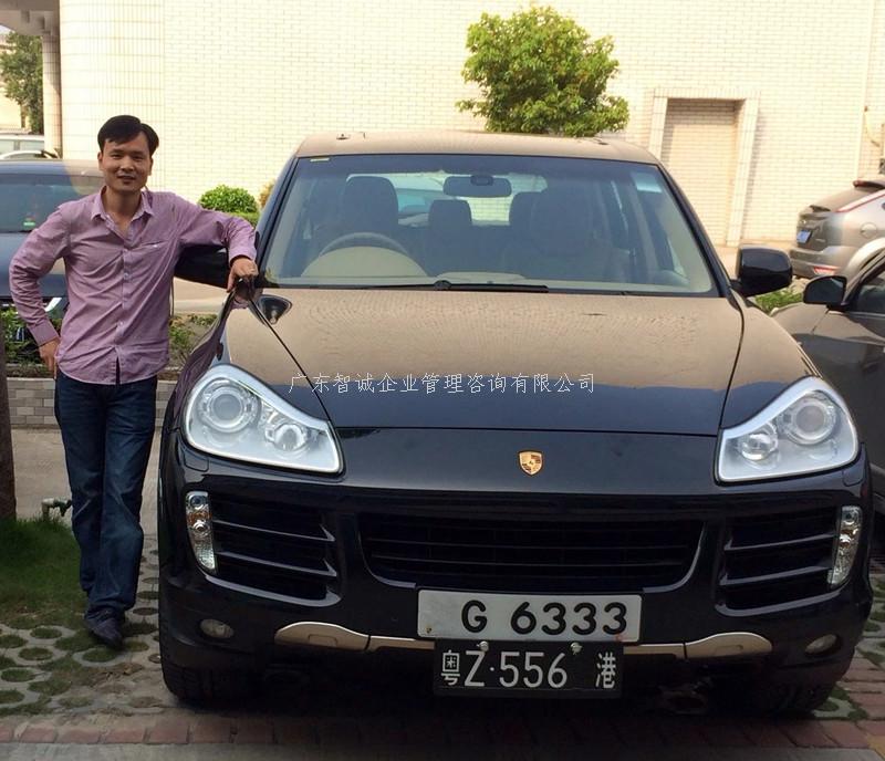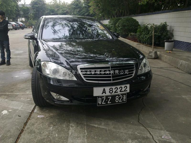 公司樓下同事與客戶車合影-粵港兩地車牌代辦